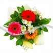 Роскошная композиция из ярких герберов в комбинации с нежными хризантемами и лепестками зелени олицетворяет собой праздничное настроение, симфонию мира и добра. Букет станет изысканным презентом по любому поводу. Изысканные оттенки цветов передадут все многообразие эмоций: радость встречи и горечь расставания, новые чувства или сильную привязанность.