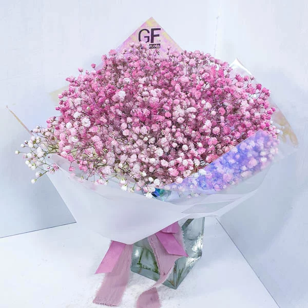В целом, "Моменты радости" - это идеальный букет для тех, кто хочет передать нежность, ласку и любовь. Букет станет прекрасным подарком на любой праздник, будь то день рождения, день свадьбы, или просто для того, чтобы подарить радость и любовь близкому человеку. Он также может быть использован как декорация для дома или офиса, чтобы придать пространству жизнь и цвета. Букет из розовой гипсофилы - это сочетание свежести и воздушности в одном букете.
